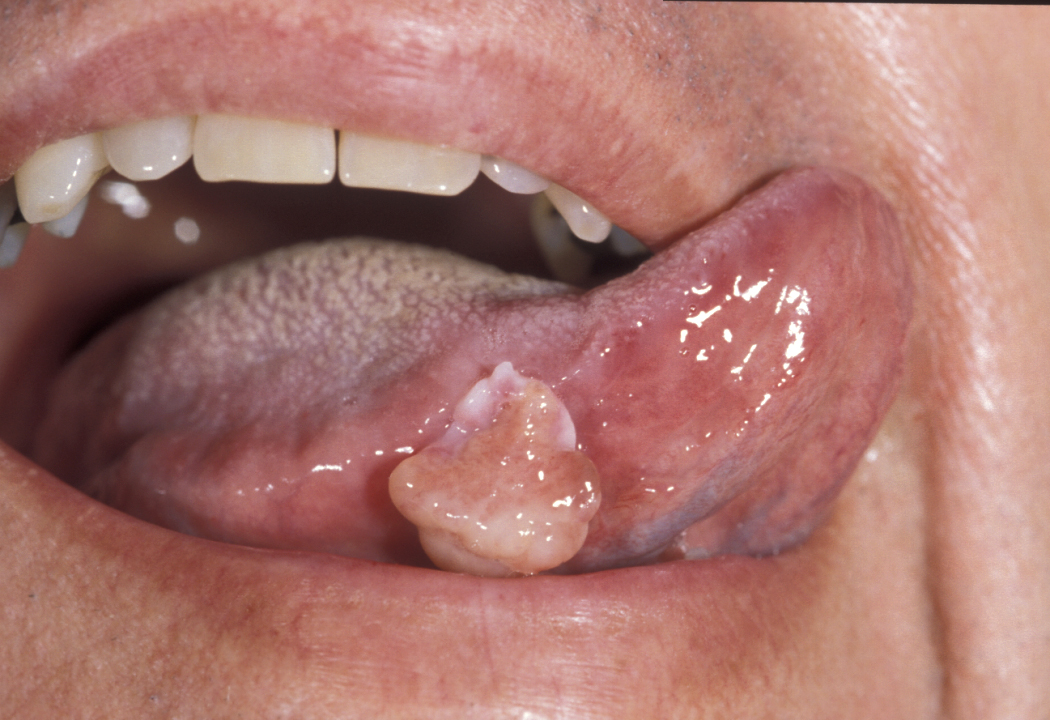 This is a sessile (immobile) or pedunculated (with an elongated stalk of tissue) nodule containing granular cells on histological examination. Present at birth, the lesion is usually excised only once the child is one year old unless it significantly interferes with normal function.