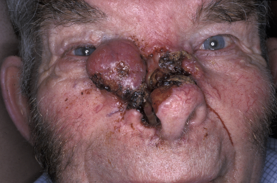 BCCs very rarely metastasise but will progressively cause local damage if neglected. They are called ‘rodent ulcers’ due to the progressive gnawing away of tissue. Their rate of growth is slow and measured in months and years (see Figure 3).