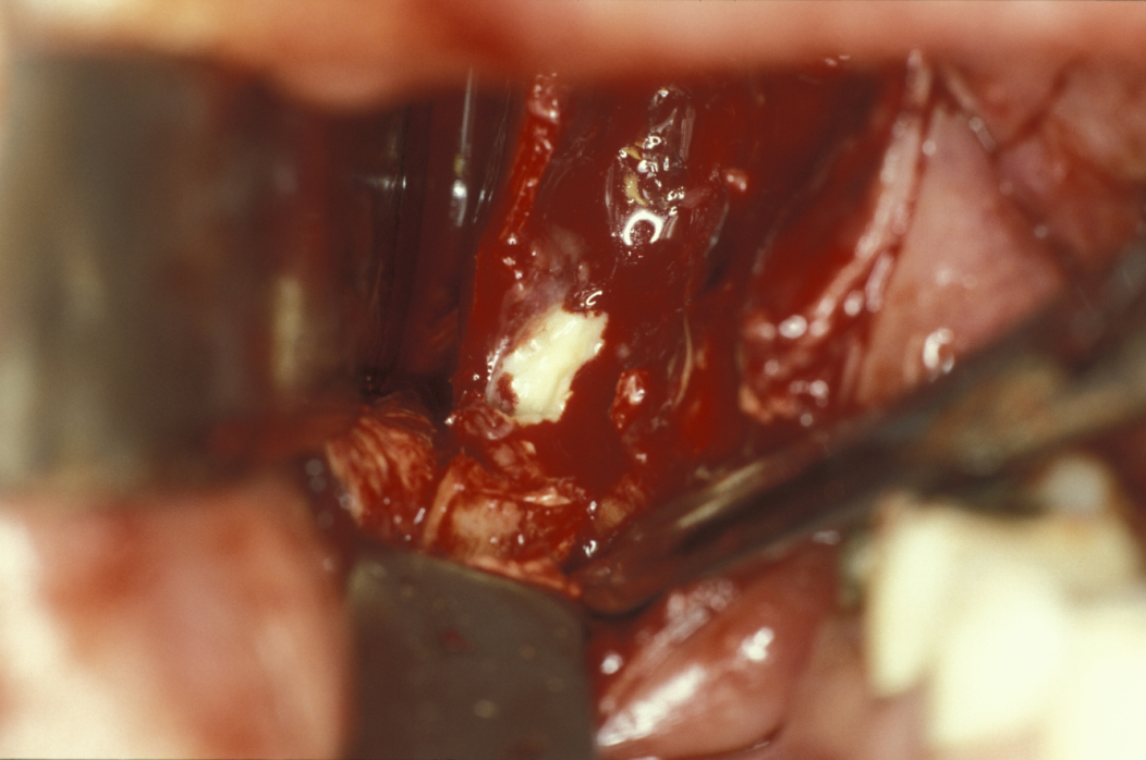 Keratocysts (developmental) - the epithelial lining in keratocysts is very friable and therefore difficult to remove completely. Microscopic ‘satellite’ cysts can be left behind at operation and this creates the problem of recurrence. The epithelium is keratinised and the keratin is shed into the lumen of the cyst producing the characteristic cheesy contents (see Figure 2). The basement membrane is flat as in a dentigerous cyst with palisaded columnar basal cells.