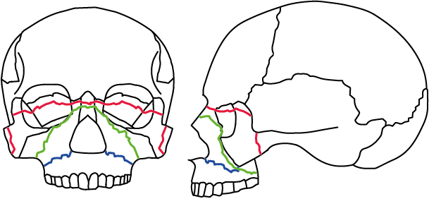 Patterns of midface fractures are schematically shown in Figure 10.