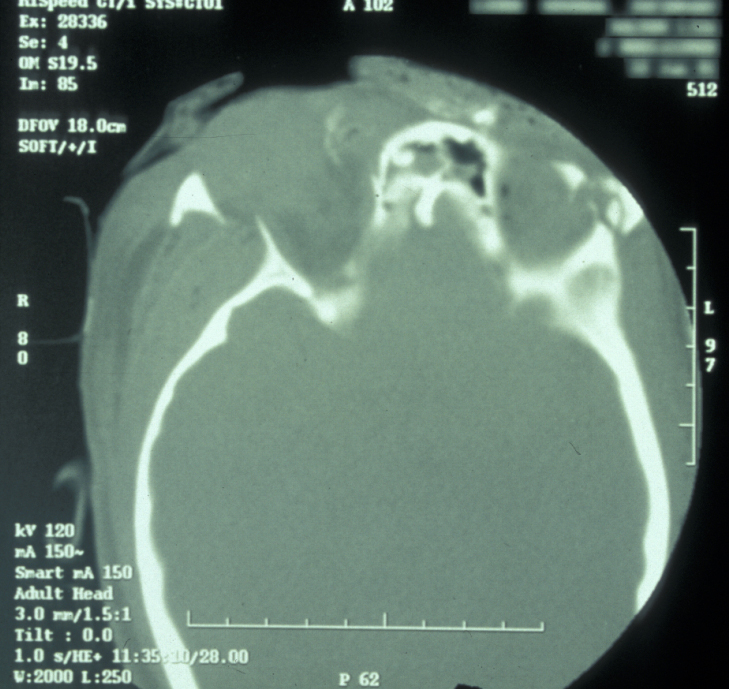 Plain film X-ray radiographs from different angles (occipitomental views) give some information, but a much more accurate assessment of the extent of the fracture can be obtained from CT scans (see Figure 11 for an example).