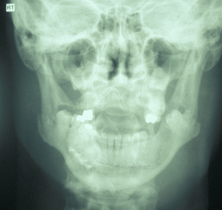 The combination of plain X-ray radiographs taken from different directions gives adequate diagnostic information for most mandibular fractures (DPT, dental panoramic tomogram (see Figure 2) and posteroanterior radiographs (see Figure 3)).