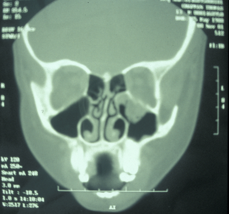 Plain X-ray films will give only a vague idea as to the extent of the injury. CT scans are mandatory, allowing accurate assessment of the fractures; they will not provide any information on sinus function but will show fluid collection within the sinus. It therefore becomes very difficult to plan treatment with any evidence base and individualised ‘best guess’ treatment depending on presentation (acute or chronic) and symptoms is usual.