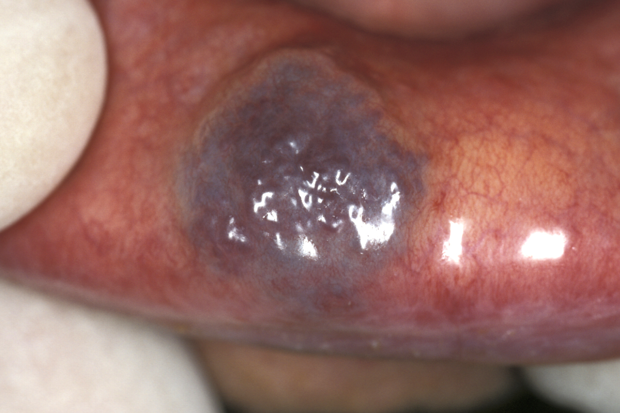 Another example of a common, benign vascular tumour that is closely related to haemangioma is pyogenic granuloma (Figure 2). Pyogenic granuloma often affects the gingiva (the gums), may cause discomfort or pain and bleeding and thus may require intervention(s).