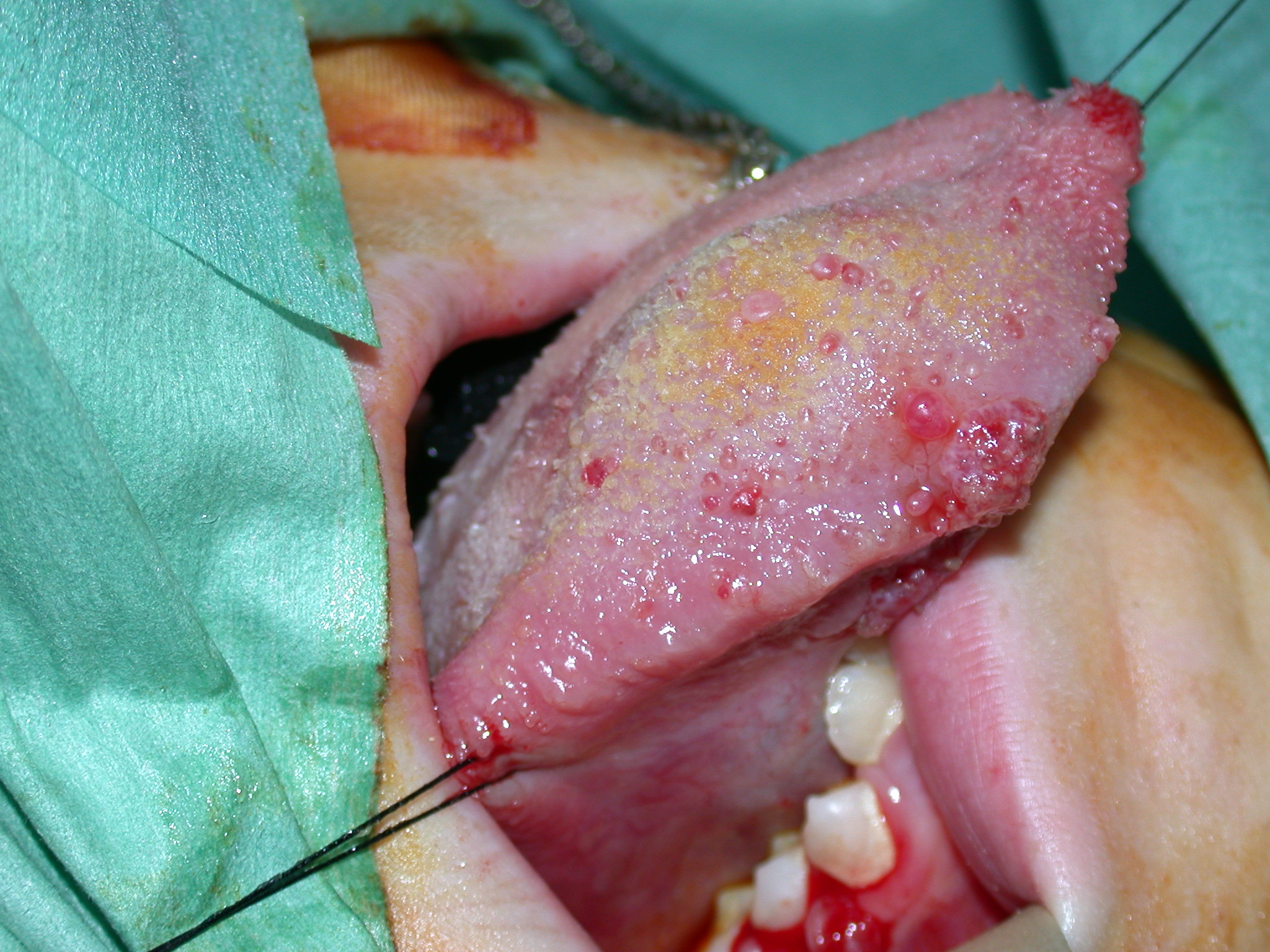 For example, haemangioma in the subglottic area (the region between the vocal cords and the windpipe) may require long-term surgical securing of the airway (tracheostomy) and later reconstructive surgery. Complications may also arise for otherwise uncomplicated haemangiomata when rapid growth leads to ulceration, bleeding or necrosis of the surrounding skin and tissues; in particular when the lower lip or ear are afflicted.