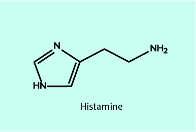 Histamine is involved, amongst further roles, in the inflammatory response and immune system regulation in general, it promotes the secretion of gastric acid, and in the brain, it acts as a neurotransmitter in the regulation of the sleep-wake cycle by maintaining the awake / alert state. It may be surprising that such a small molecule has so many different roles, but it is precisely because it is a small, slightly polar molecule that histamine can fulfill these many roles: it can be easily dispensed everywhere in the body, it can bind to many different receptors and structures, and it is easy to generate in the cell cycle as and when needed.