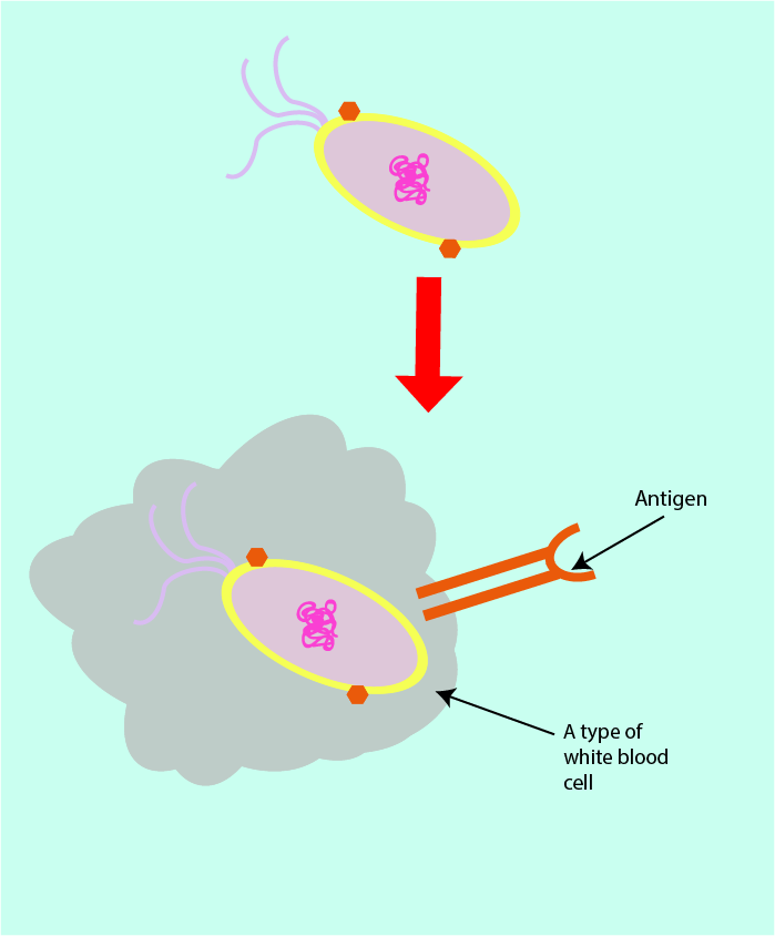 The white blood cells of the adaptive immune system are able to engulf an infecting pathogen, and then identify the various components and molecules which make up this particular microorganism, before they finally present a small protein (an antigen) with a specific shape on their cell surface. In effect, the antigen on the surface of the white blood cell represents, like a fingerprint, the particular pathogen. This type of white blood cell is often referred to as an antigen-presenting cell (see Figure 9).