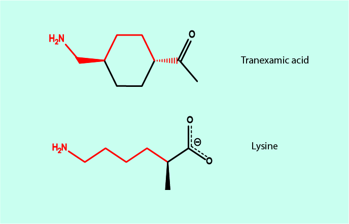 Tranexamic acid is a small organic molecule, chemically closely related to the essential (not made by the body in mammals) amino acid lysine (see Figure 1).