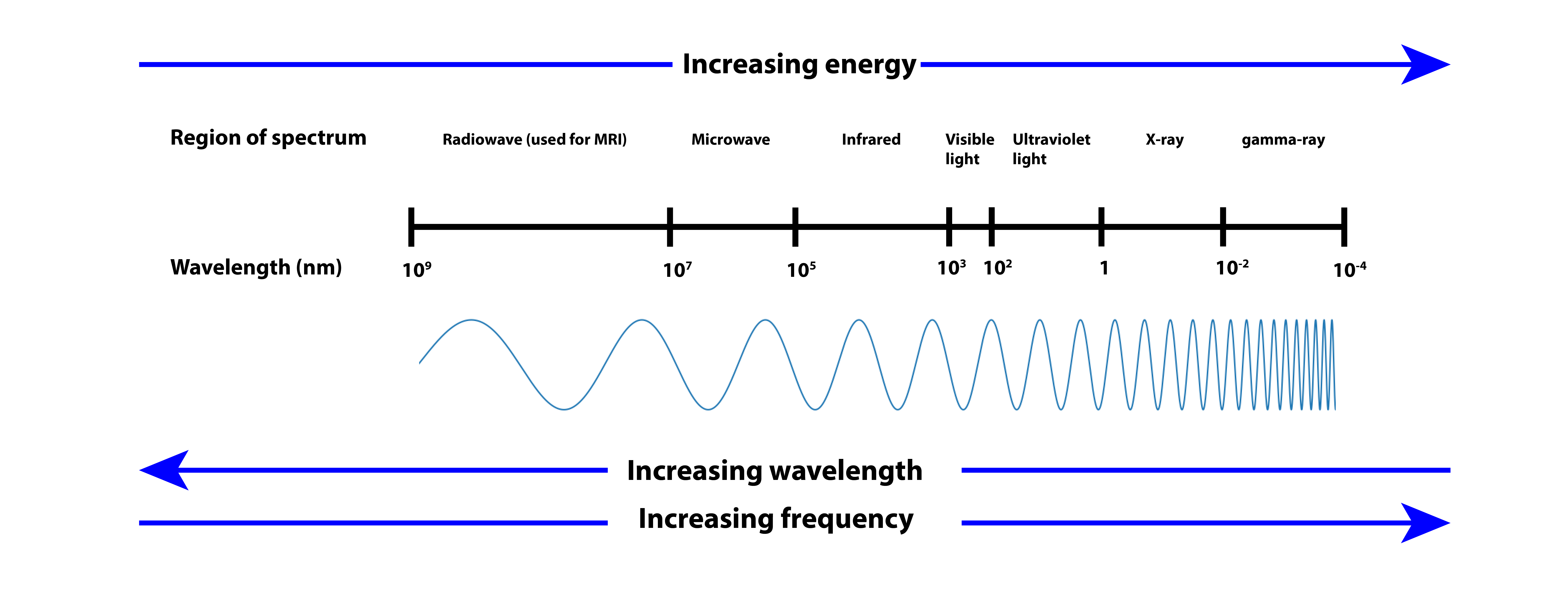 The ideas supporting photobiomodulation relate to the known biological effects of photons (light) of distinct wavelengths on living matter (Figure 1). For example, visible light is important in regulating the circadian rhythm and sleep / alertness patterns; a specific range of ultraviolet radiation (in sunshine) is necessary for the biosynthesis of vitamin D (hence known as the sunshine vitamin) but ultraviolet radiation is also responsible for the ageing of skin and the development of skin malignancies. Photobiomodulation employs radiation in the visible red light to near-infrared range (Figure 1), photons with such wavelengths can be produced by lasers or light emitting diodes, LEDs. Radiation in this wavelength region has been shown to penetrate skin and other tissues.