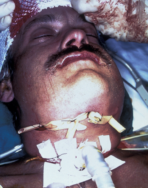 The airway must be maintained and secured at an early stage. This will require intubation to allow drainage of the compressed infected region usually by fibre optic intubation. Tracheostomy or cricothyroidotomy should be procedures of last choice as a surgical airway under these conditions creates a high risk of mediastinitis and an approximate 50% mortality. The involved spaces should be decompressed, even though frequently little pus is obtained (see Figure 1). High dose intravenous antibiotics should be given to complement surgical decompression. Any infective focus should be removed.