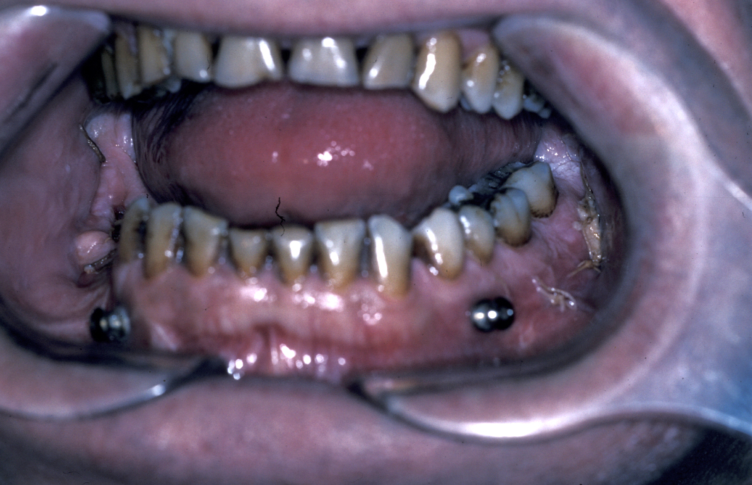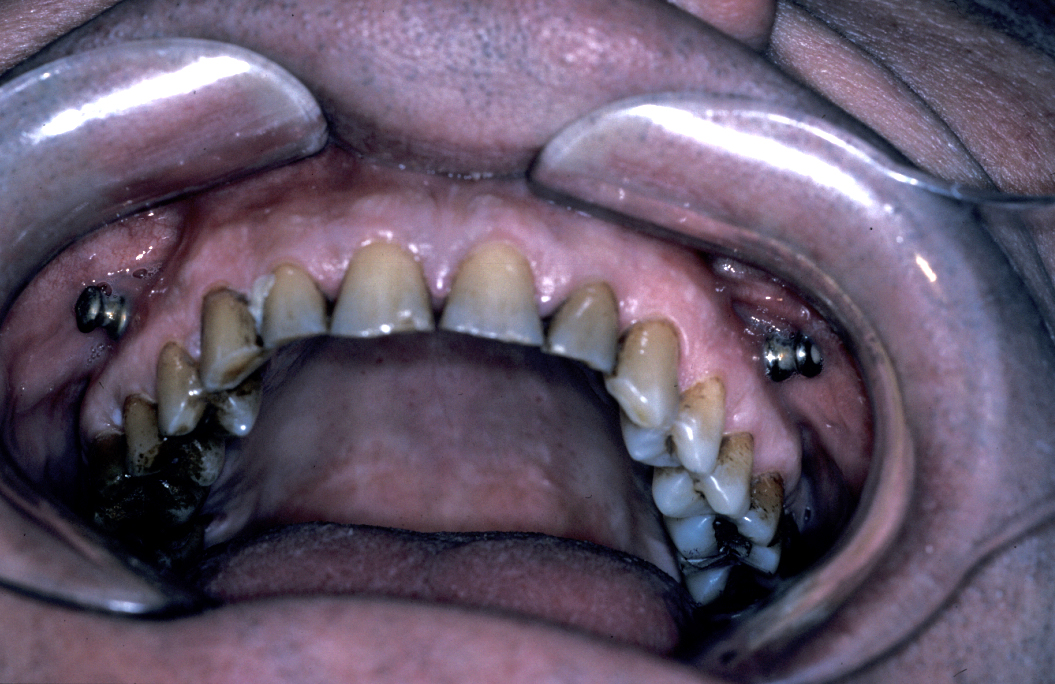 However, because in extremely atrophic mandibles the subperiosteal plexus is probably the major blood supply to the bone, a supraperiostal dissection has been suggested and a supraperiosteal placement of plates and screws were recommended in the literature (personal experience with this technique showed it to be totally unhelpful as soft tissue ingrowth from the periosteum (membrane surrounding bone) loosened the screws far too early).