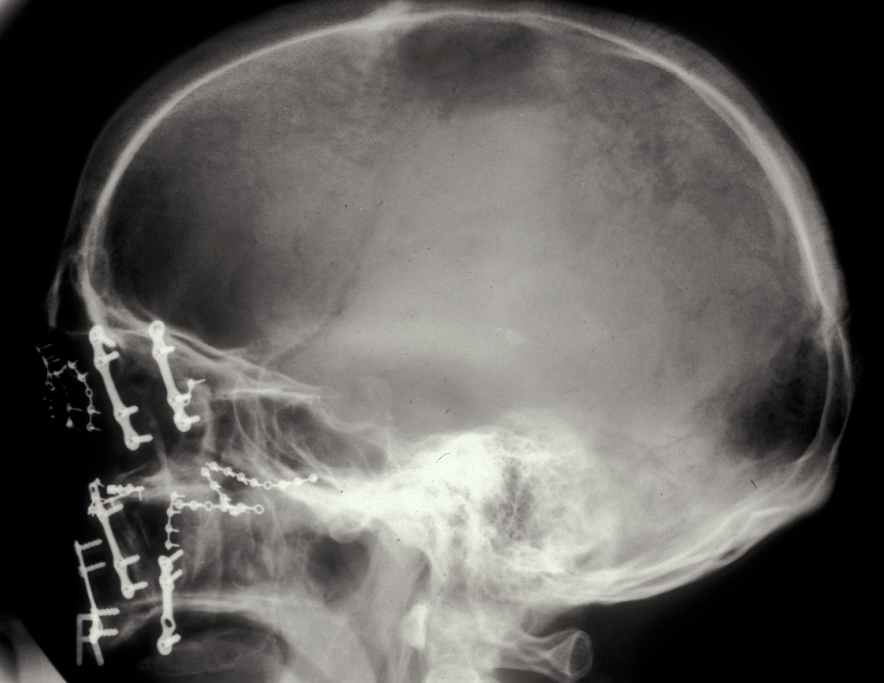 Repair of the frontal bone defect can be achieved with inner table from the cranial vault, fracture fragments, outer table bone graft or free iliac bone. If there has been a substantial degree of bone loss, acrylic plates were popular as a custom made cover for the defect. Alternatively, titanium sheets can be used in the acute setting and cut to shape or fabricated based on CT scans. Several other cranioplasty materials have recently become available (for example, polyarylether-etherketone (PEEK)). Long term follow up involves monitoring for frontal mucocoele development, meningitis, frontal bone deformity, potential infection of the plates and CSF leak.