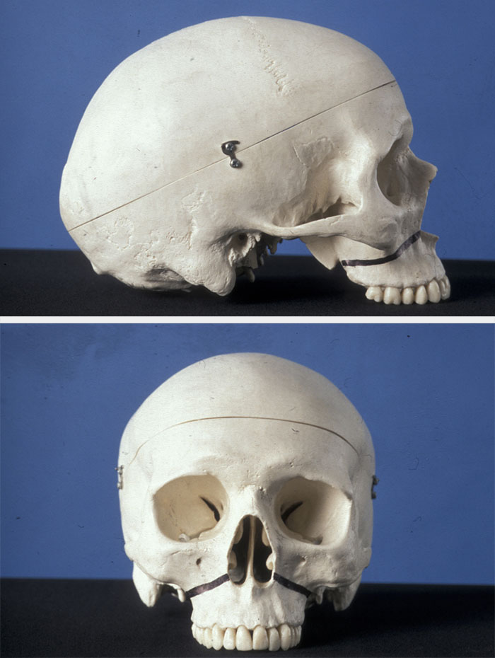 - the mandible can be advanced, set back or rotated in an axial plane to allow correction of asymmetry;