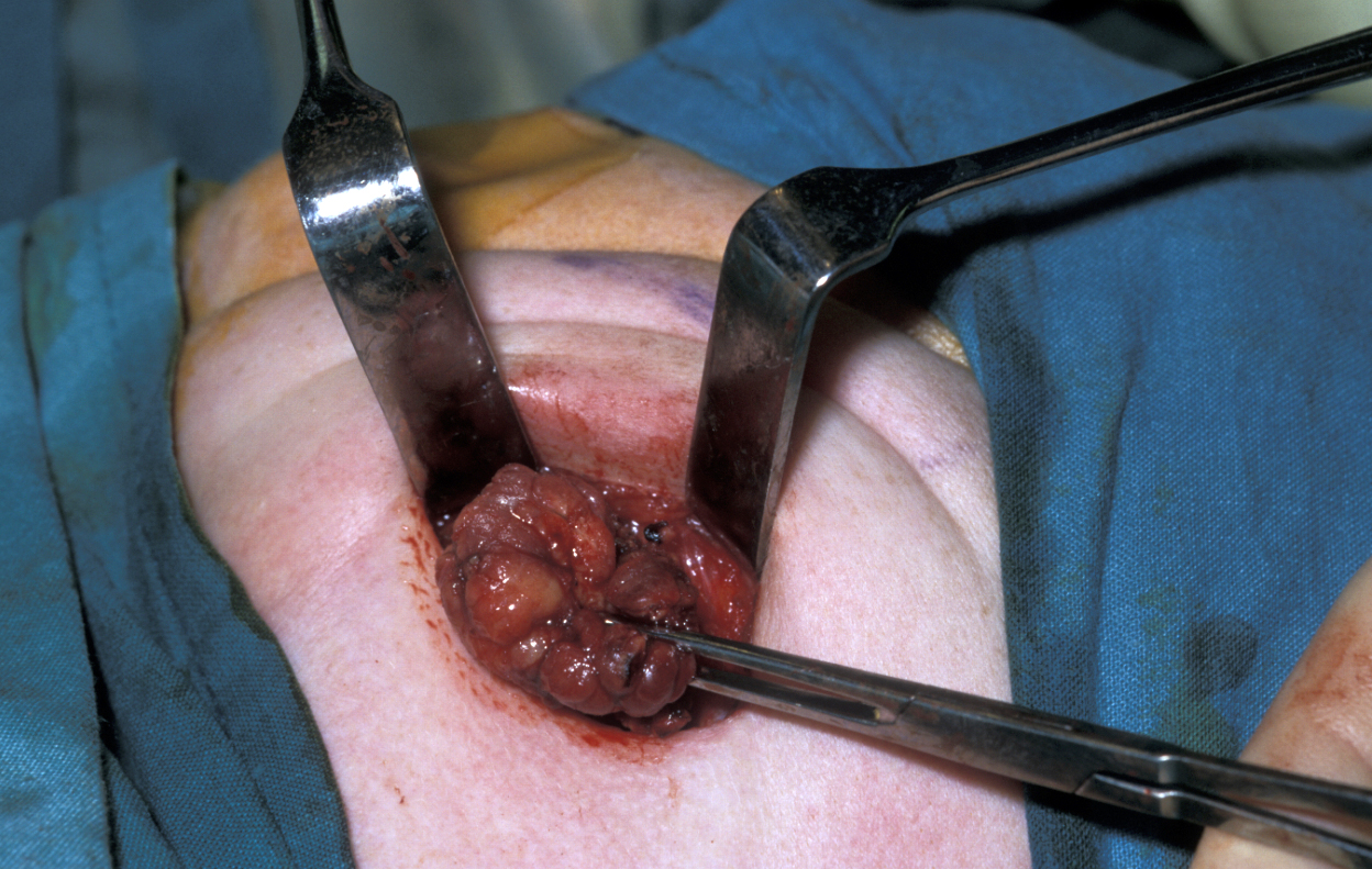 - tumour: the nerve branch is identified above and below the tumour so adequate excision can be carried out.