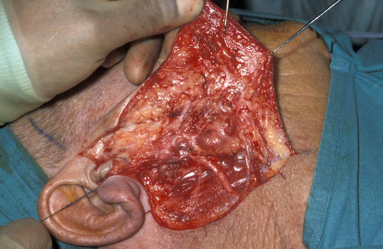 The remaining attached parotid gland can therefore be proceeded through quite quickly.